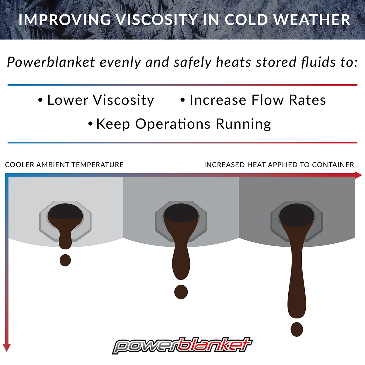 - Powerblanket – designed for any definitive heating applications, surrounded by a rugged vinyl shell in a wraparound design with a removable top, safely raises material temperatures as high as 145 F and can be used in temperatures as low as -20 F